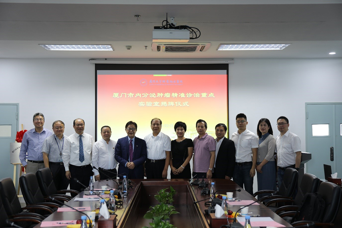 10月10日,厦门市内分泌肿瘤精准诊治重点实验室在厦门大学附属翔安医院举行揭牌仪式。中国科学院福建物质结构研究所学术委员会主任、中国科学院洪茂椿院士,厦门大学附属翔安医院院长、中国工程院陈洪铎院士,厦门市科技局副局长黄慰萍,厦门大学医科建设管理办公室主任、医学院党委书记张建安,厦门大学科技处副处长吴喜平,厦门大学附属翔安医院执行院长张国君教授共同为实验室揭牌。仪式由副院长程继东主持。