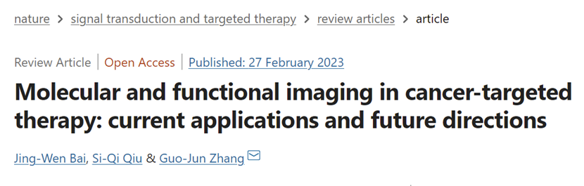 近日,厦门大学附属翔安医院肿瘤诊治中心主任、乳腺甲状腺外科主任、福建省乳腺癌精准诊治重点实验室及厦门市内分泌肿瘤精准诊治重点实验室主任张国君受邀在Signal Transduction and Targeted Therapy(中科院1区Top期刊,影响因子:38.104)在线发表了题为“Molecular and functional imaging in cancer-targeted therapy: current applications and future directions (分子成像和功能成像在肿瘤靶向治疗的应用和展望)”的综述。